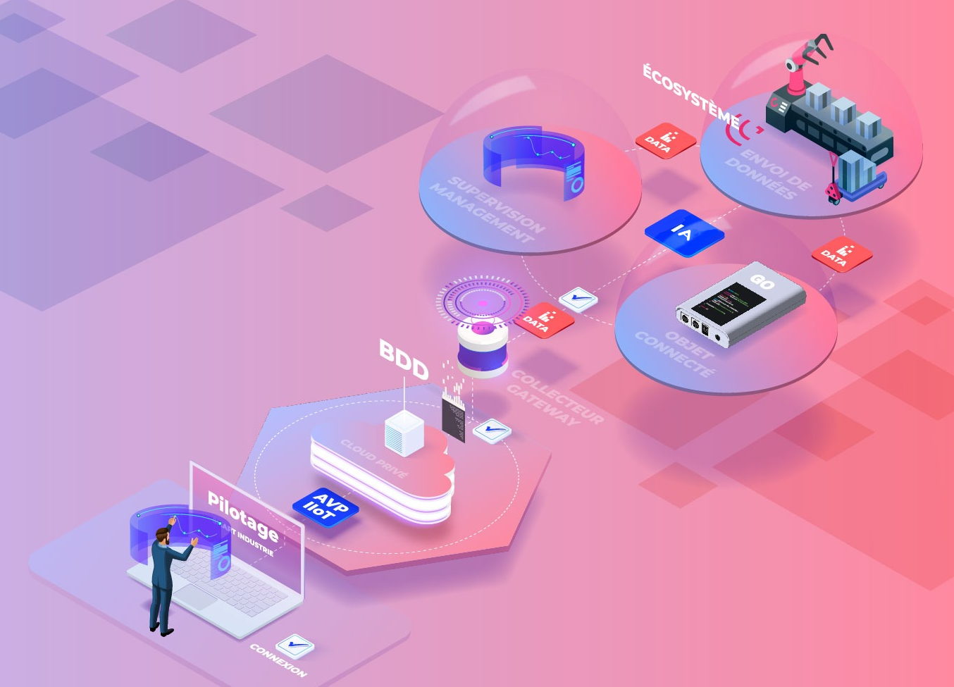 Les machines et les outils logiciels liés à l’exploitation, sont interconnectés grâce à des objets qui se connectent et exploitent des systèmes d’informations en réseau, localement et en cloud, afin de capter, collecter, puis transmettre des données.